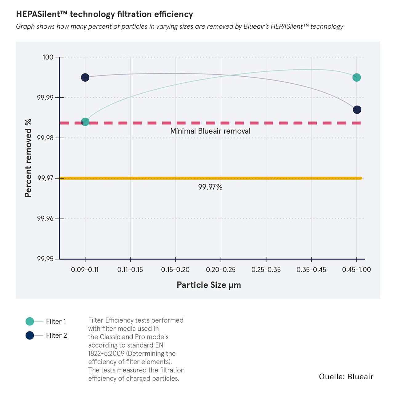 Bleuair HEPASilent-Filter, getestet nach der europäischen Norm EN 1822