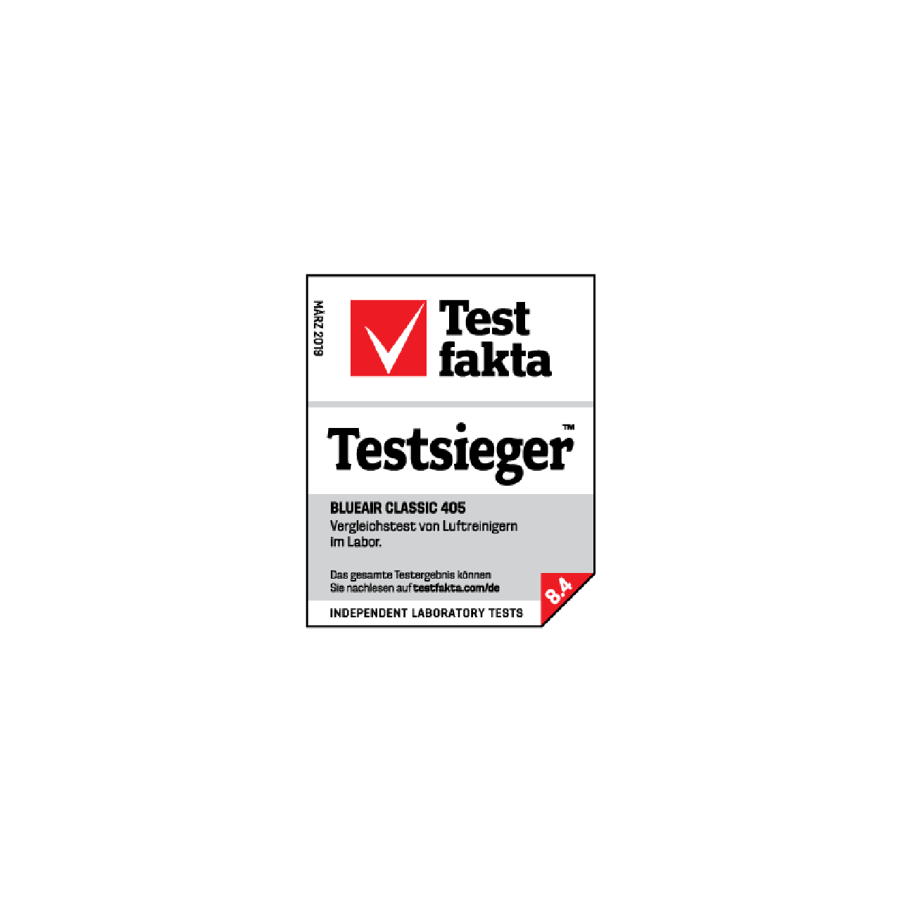 Das nordische unabhängige Testinstitut Testfakta bewertet das Produkt Classic 405, das bei niedriger und maximaler Leistungsstufe die höchste Luftreinigungskapazität aufweist, mit der höchsten Gesamtbewertung von 8,4 von 10. Es wurden 10 verschiedene Luftreiniger aus den nordischen Ländern, Großbritannien, Deutschland, Polen und den Niederlanden getestet.