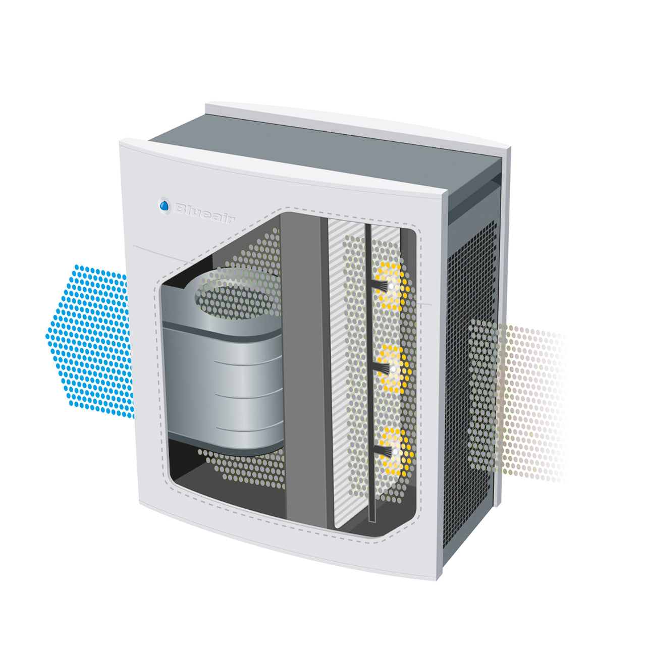 Die hier verwendete HEPASilent® Technologie von Blueair vereint das Beste aus elektrostatischer und mechanischer Filterung. Die fortschrittliche Kombination aus Filtermedien und einer gekapselter Partikel-Ladekammer stellt sicher, dass der Luftreiniger Blueair Classic 405 Reinigungs-Ergebnisse liefert, die andere mechanische oder elektrostatische Luftreiniger alleine übertreffen. Das hochwirksame Filtersystem aus Polypropylen filtert Viren und Partikel bis zu einer Größe von 0,1 Mikron mit einem Wirkungsgrad von 99.97%. Nach Gebrauch zerfällt das ungiftige Filtermedium in Kohlendioxid und Wasser.