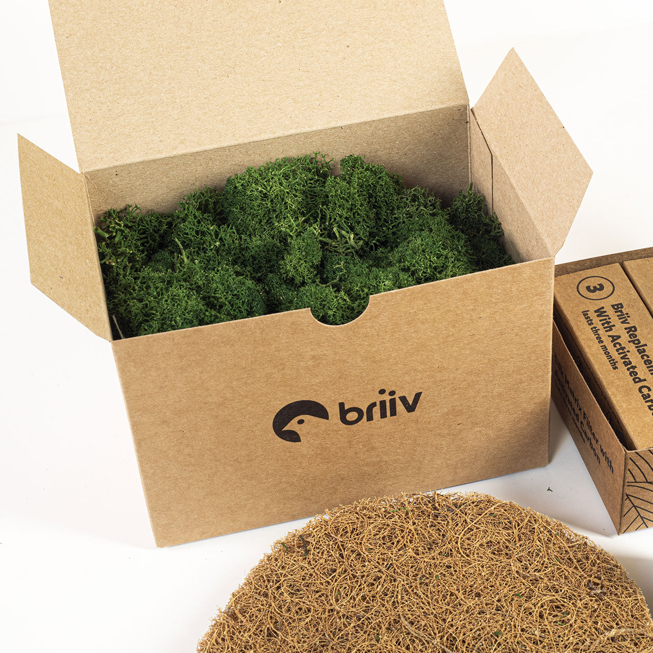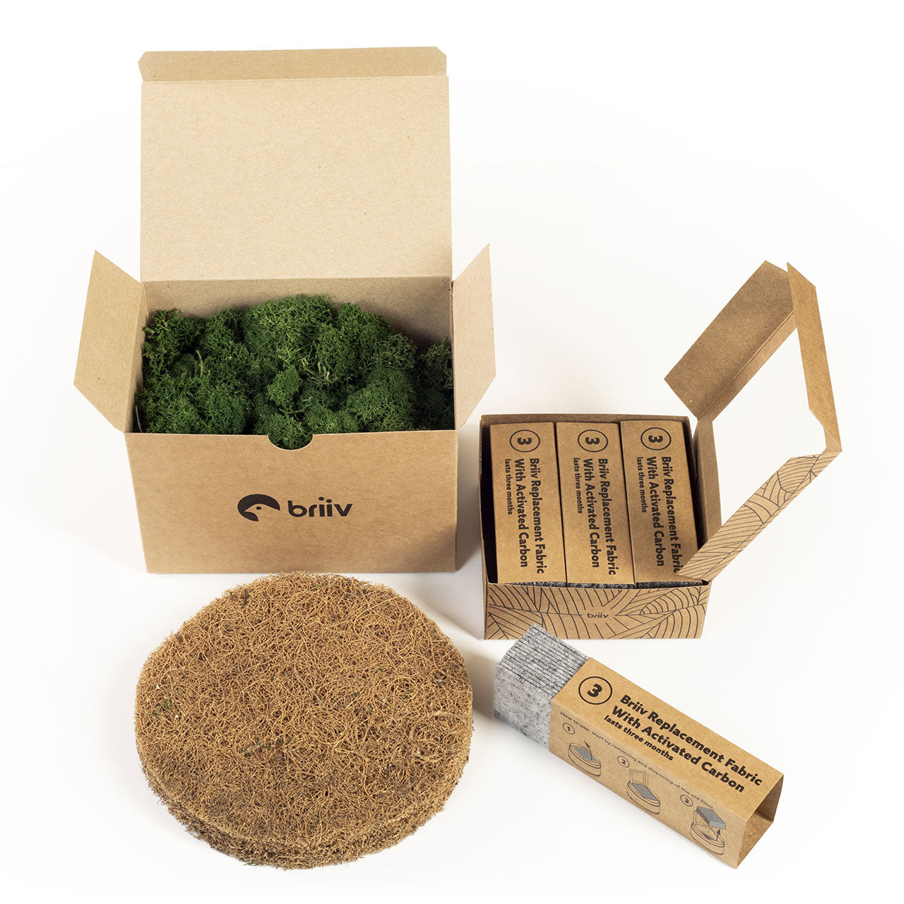 Alle Bestandteile des Filtersets bestehen aus 100% natürlichen Materialien und sind umweltfreundlich. Das Briiv Luftreiniger-Filterset ist eine effektive und nachhaltige Methode zur Verbesserung der Luftqualität Zuhause oder im Büro.